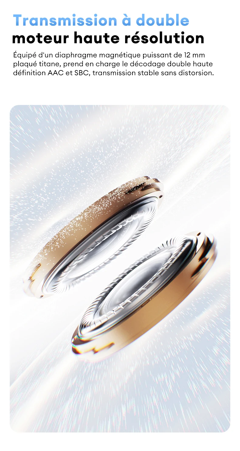 1.[Qualité sonore Hi-Fi immersive] : Amplification des basses percutantes de 12 mm, diaphragme personnalisé amplifiant les basses de 40 %. Ressentez les battements de tambour et les rythmes électro pendant vos entraînements. Son Dual-Eco HD et algorithmes de qualité cinéma pour une restitution des détails subtils. Percevez les respirations vocales et les sifflements des balles en 3D.