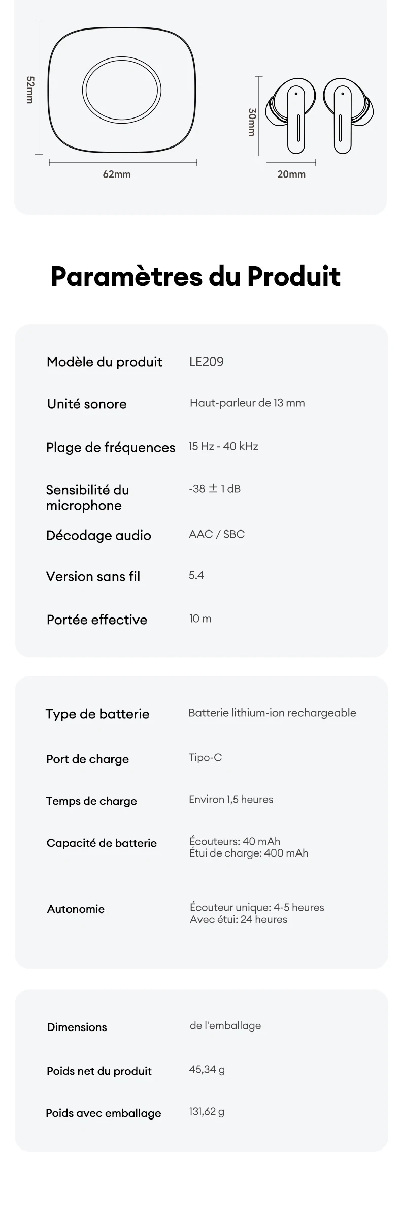 [Capacité de la batterie des écouteurs] : 40 mAh