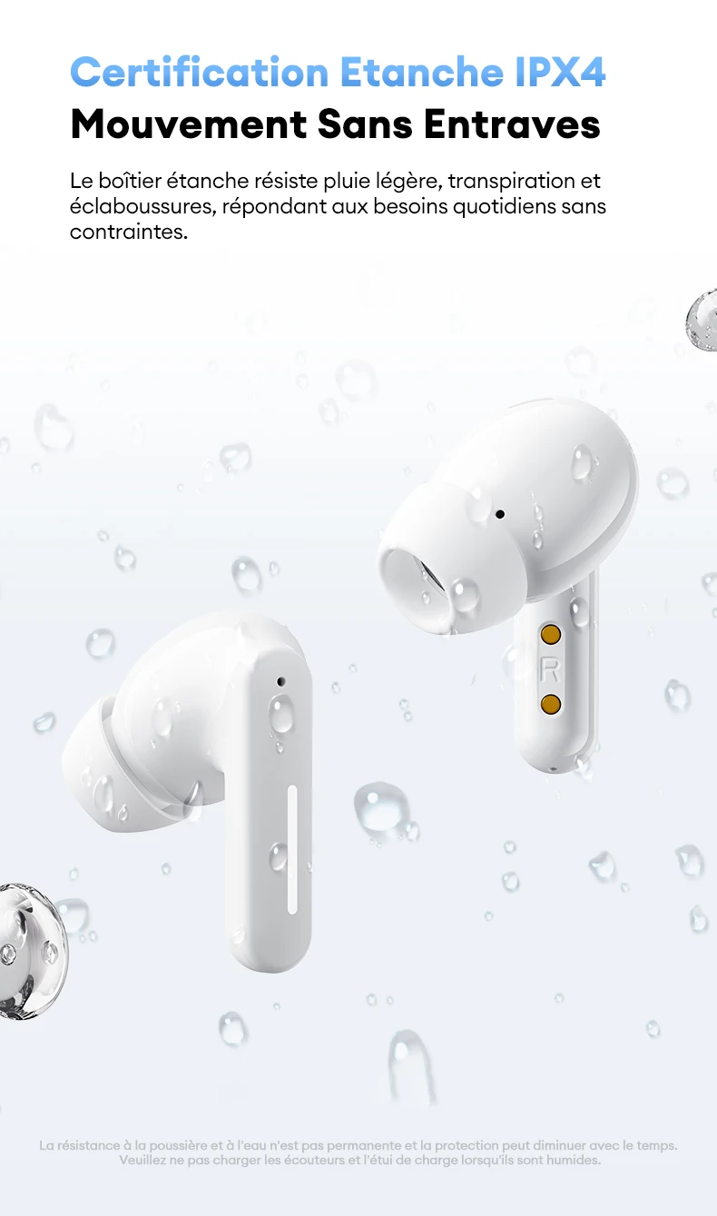 Avec leur boîtier compact et élégant, ces écouteurs offrent une excellente autonomie et se transportent facilement partout. Idéal pour la musique, les appels et le quotidien.