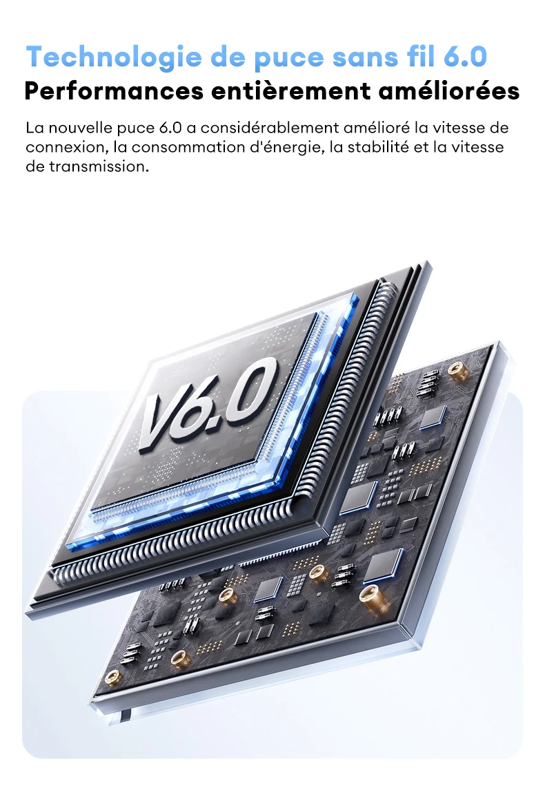 3.[Connectivité Bluetooth 6.0 améliorée] : Bénéficiez de vitesses de transmission plus rapides et plus stables grâce à la technologie Bluetooth 6.0. Les écouteurs Bluetooth offrent un appairage et une connexion fluides avec vos appareils intelligents, garantissant un son de haute qualité avec une latence ultra-faible et une synchronisation parfaite. Profitez de votre musique sans perte de signal ni interruption.