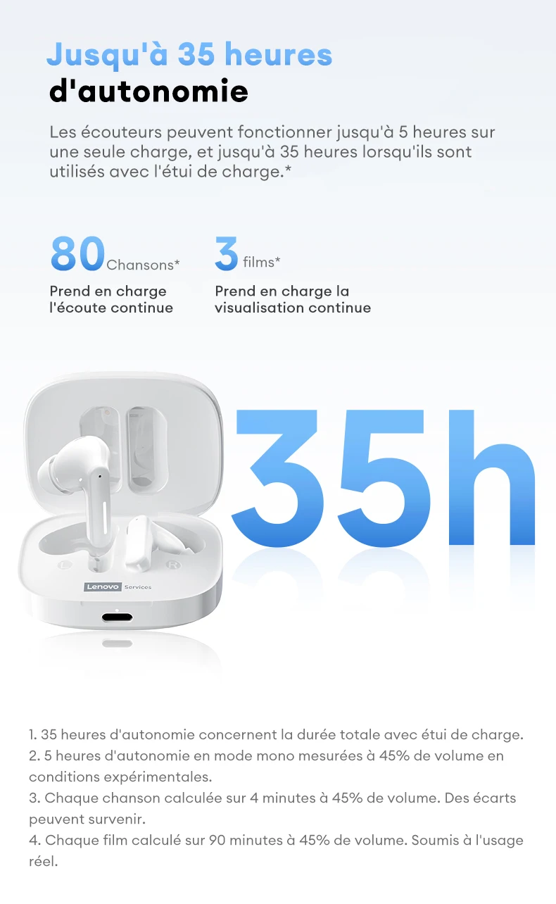Découvrez les écouteurs sans fil de Lenovo, alliant design moderne et performance audio exceptionnelle. Conçus pour offrir une expérience immersive, ils intègrent la technologie ACS 360° Air Conduction Stereo pour un son riche et équilibré.